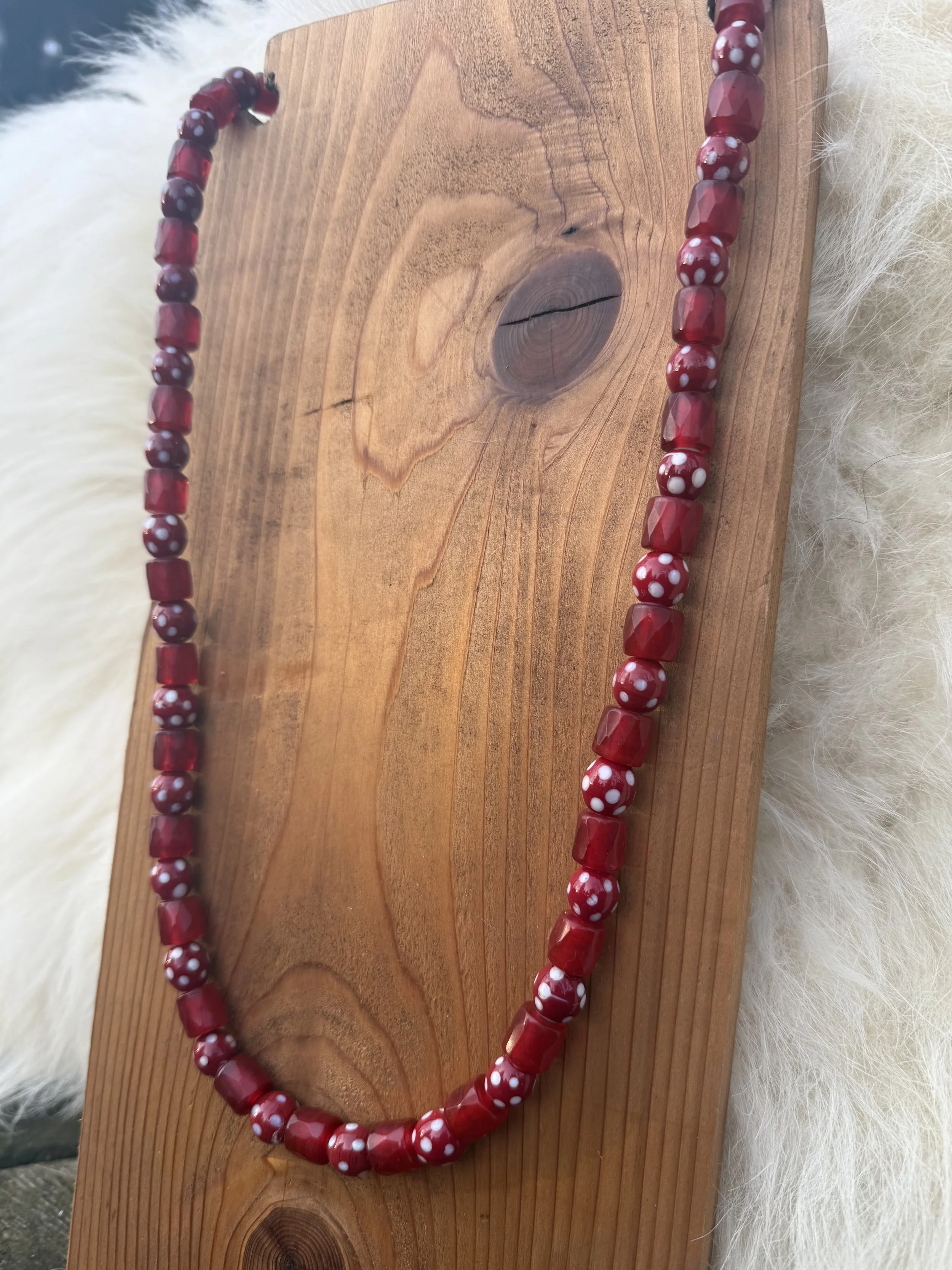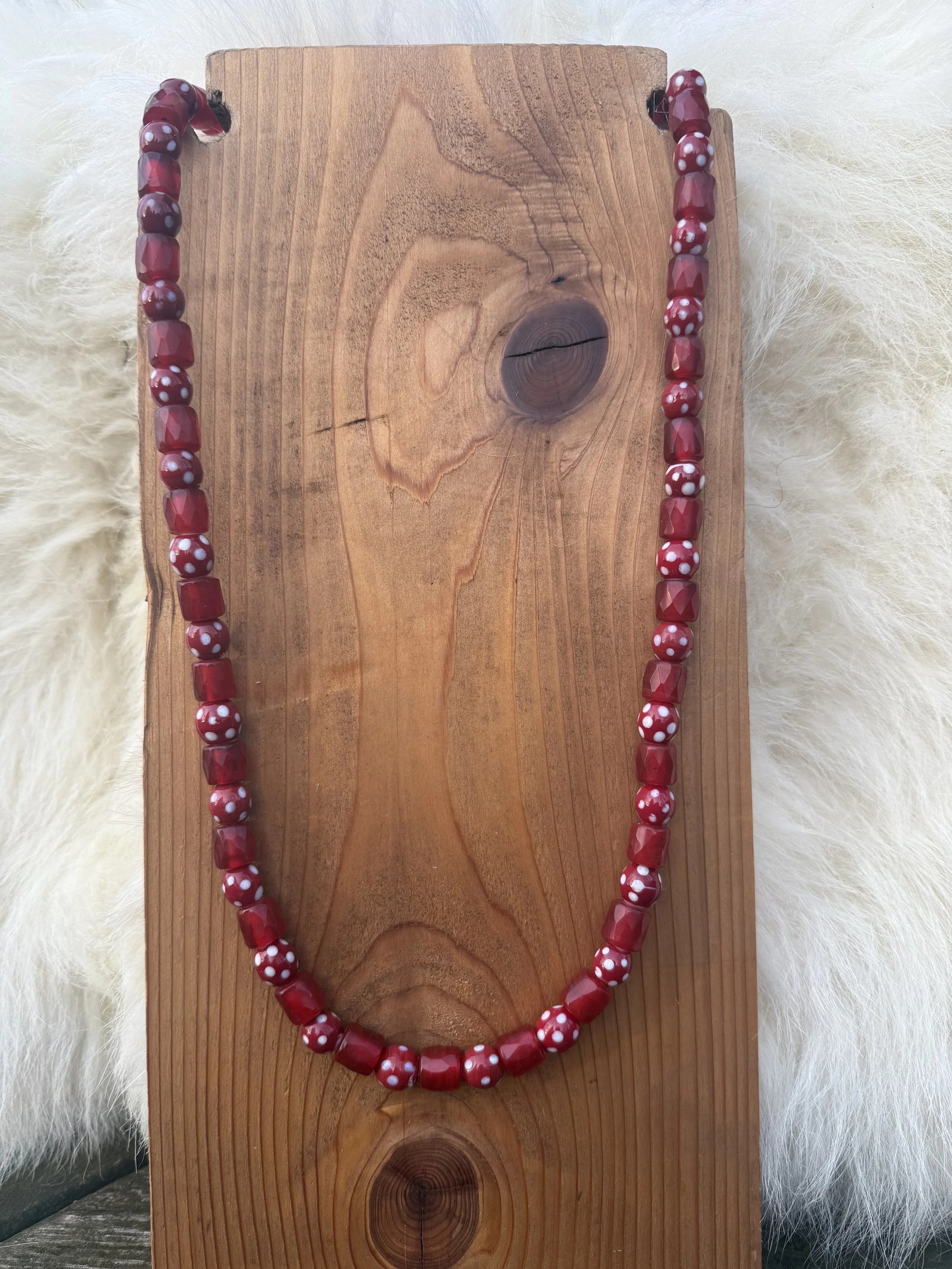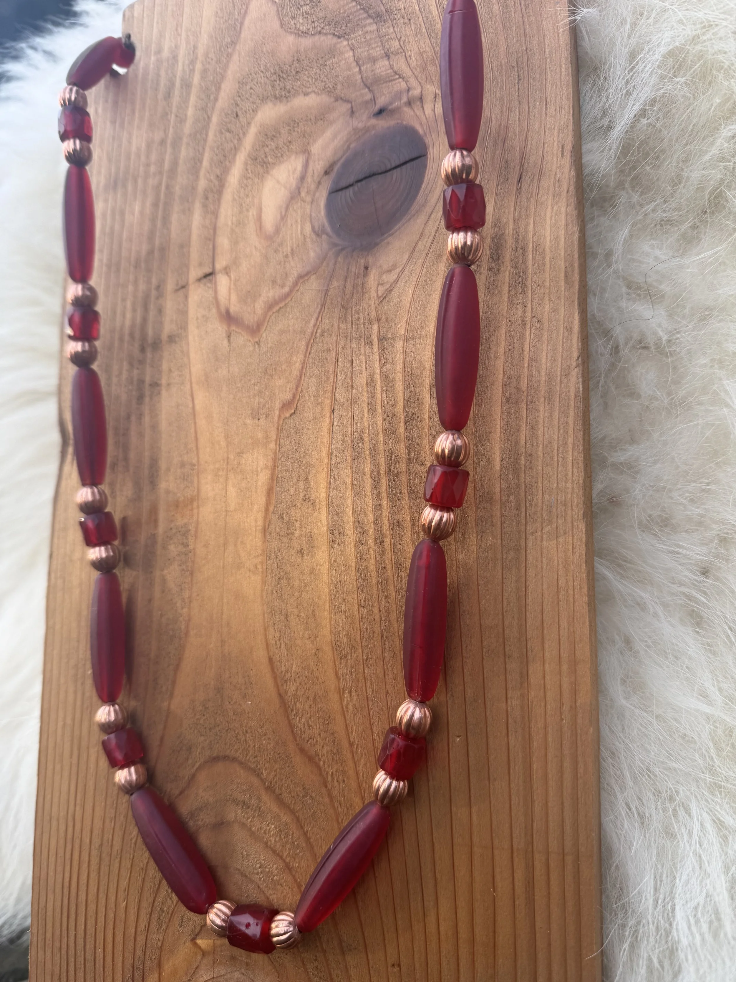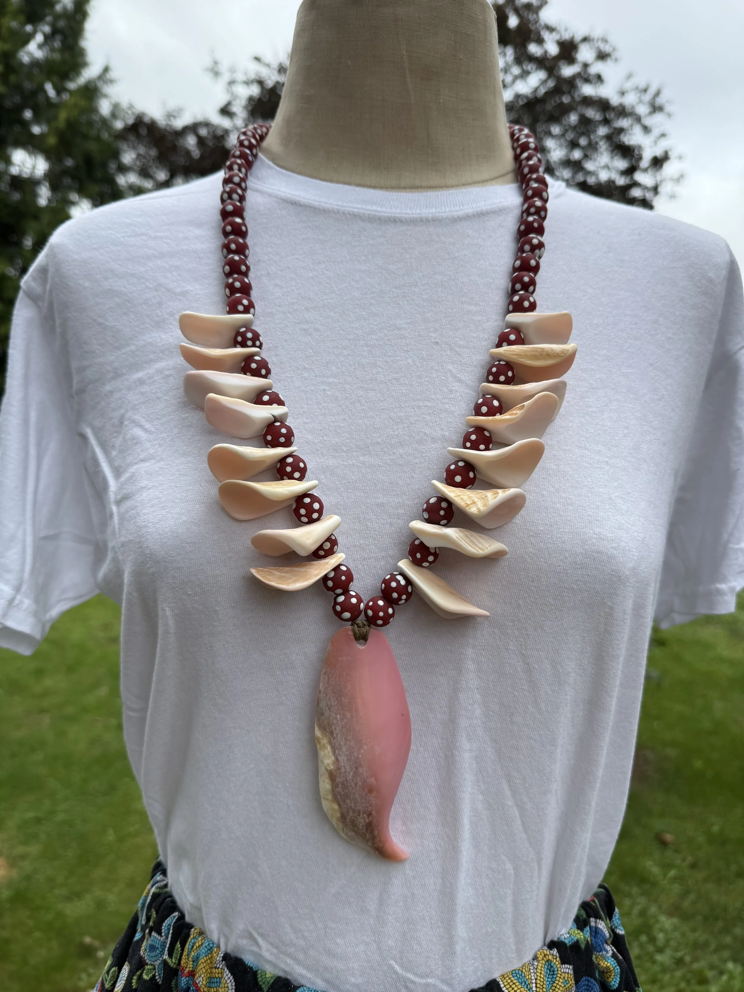 Hand carved black jade adze finished with recycled glass beads, brass beads, & moose hide leather backing.